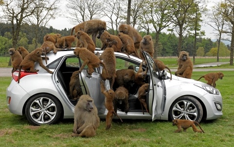 Dường như Hyundai cũng muốn chứng minh điều đó khi cho lái chiếc i30 mới đến công viên Knowsley Safari gần Liverpool (Anh) để "mời" các "chuyên gia" kiểm định đặc biệt - những chú khỉ đầu chó - nhảy lên xe và kiểm định sản phẩm.