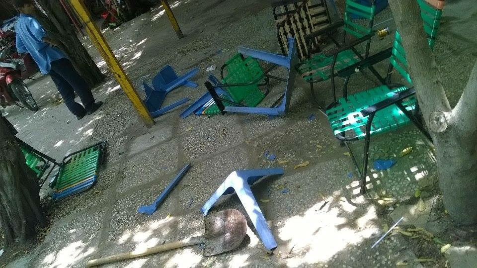 | Quán cà phê của chị Phụng bị giang hồ vác mã tấu tới đập phá bàn ghế. Ảnh: Mạnh Nguyên. |