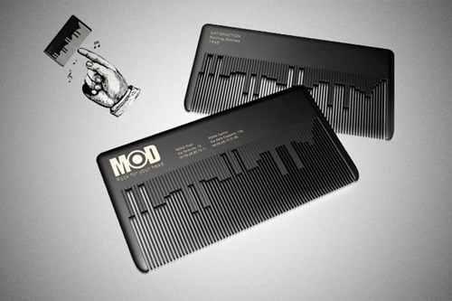 Nếu dùng ngón tay lướt trên thanh lược bạn sẽ tạo ra âm thanh là điệu nhạc rock cổ điển, đó là mẫu danh thiếp độc đáo của cửa hiệu làm tóc MOD. |