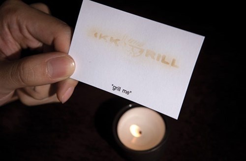 Để xem được thông tin trên danh thiếp của nhà hàng nướng BKK, bạn phải hơ nó trên lửa. |