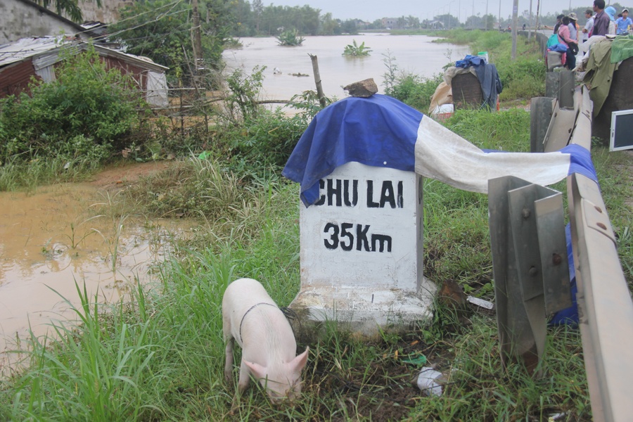 Đứng trên cầu Nam Quảng Nam, nhìn ra xa chỉ thấy toàn nước lũ đục ngầu bao vay tứ phía. Hàng trăm hộ dân thôn Phú Tân của xã Tam Xuân 1 sống dọc triền sông Bàn Thạch bị nước lũ từ hồ thủy lợi Phú Ninh đổ về trở tay không kịp. Có nhiều nhà nước vào ngập gần tới nóc.