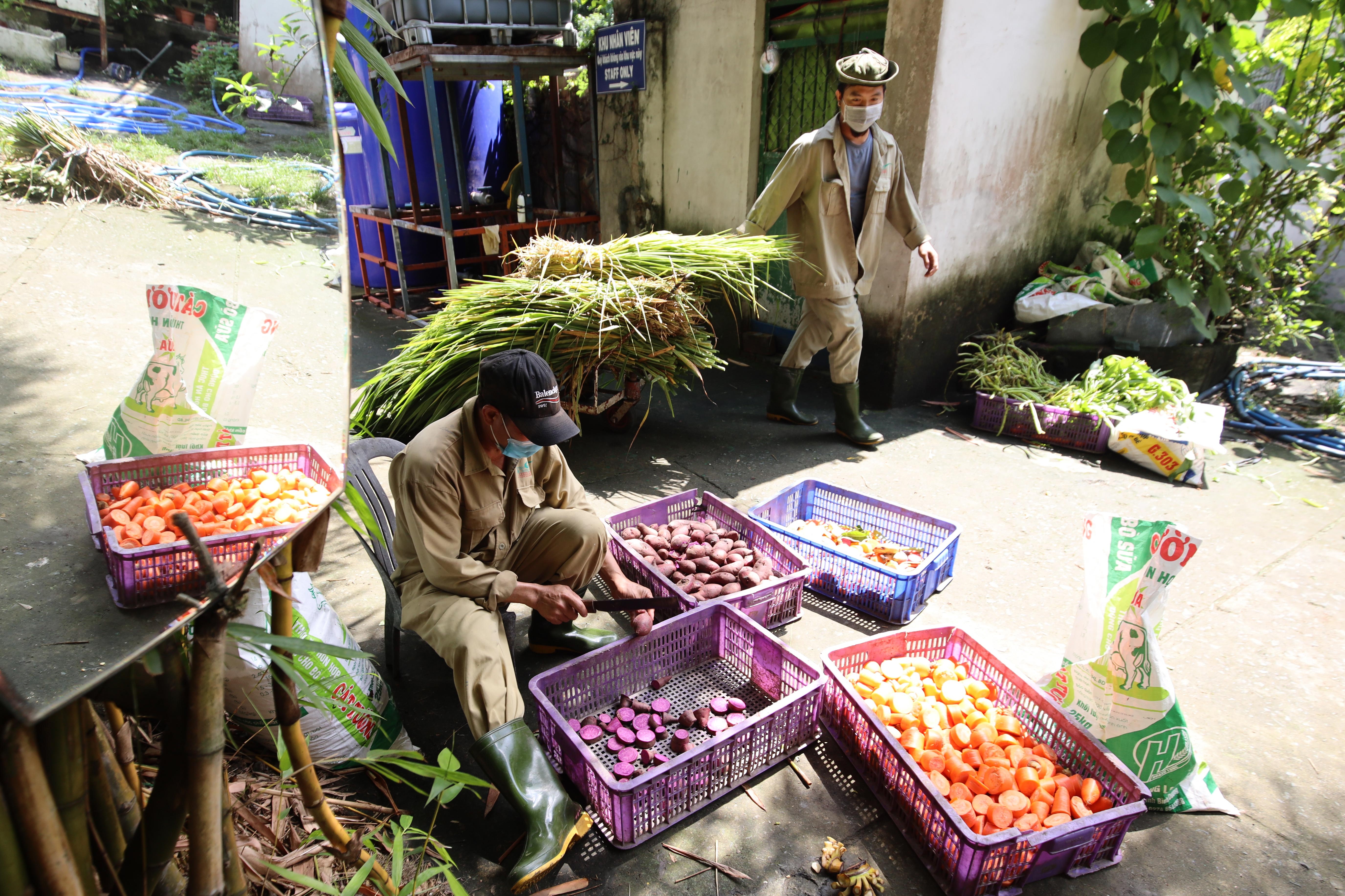 Theo anh Đăng, nguồn cung cấp cũng như khâu vận chuyển thực phẩm cho động vật có lẽ là khó khăn lớn nhất mùa dịch: "Vấn đề ăn uống của người dân còn gặp khó, huống gì động vật". Tuy được tạo điều kiện để mua thực phẩm nhưng nguồn cung gặp khó khăn, hạn chế đi lại, khâu bảo quản cũng cần chú trọng. Với thịt, cá, trứng kiến... nhân viên ở đây mua lượng lớn và bảo quản trong tủ đông. Vườn thú cũng duy trì hoạt động của đội sản xuất tại Củ Chi, mỗi ngày vận chuyển 3 tấn cỏ và rau ăn lá. Tạm dừng hoạt động từ tháng 5 nên không có nguồn thu, mới đây Thảo Cầm Viên đã phải đề xuất TP.HCM hỗ trợ chi phí. Thông tin này cũng được chia sẻ rộng rãi, nhiều người kêu gọi chung tay ủng hộ. Với anh Đăng, đây là điều đáng quý. Để chăm sóc cho gần 1.500 con vật, nhân viên ở lại Thảo Cầm Viên trong mùa dịch phải tăng khối lượng công việc so với ngày thường. Họ bắt đầu ngày mới từ 6h30 và kết thúc lúc 17h. Các nhân viên tập trung dọn dẹp tiểu cảnh trồng hoa, sửa sang các khu vực để chuẩn bị cho sự trở lại. "Dịch bệnh sớm được kiểm soát, vườn thú mở cửa và khẩu phần ăn của động vật tốt hơn là mong muốn lớn nhất của chúng tôi trong thời điểm này", đại diện Thảo Cầm Viên chia sẻ.