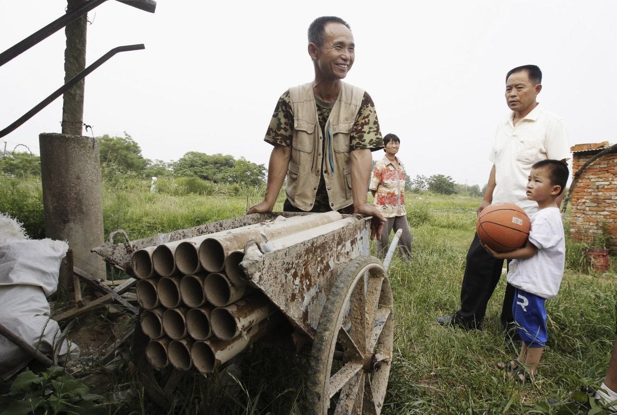 Chỉ với xe cút kít và những ống thép, một người đàn ông ở tỉnh Hồ Bắc đã chế tạo khẩu pháo đa nòng. Một người dân khác ở Bắc Kinh tự lắp ráp robot kéo xe.