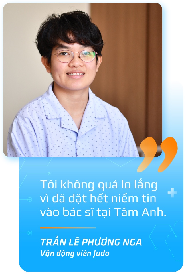“Tôi không quá lo lắng vì đã đặt hết niềm tin vào bác sĩ tại Tâm Anh. Quy trình nghỉ ngơi sau mổ chỉ mất một ngày. Tôi có thể trở về nhà sớm, trước khi bước vào các đợt tập vật lý trị liệu và tập phục hồi nhẹ nhàng trong vài tháng tới. Lành thương trong khoảng thời gian rút ngắn, thêm vài tháng điều trị phục hồi chức năng tích cực, tôi kỳ vọng bản thân có thể tập luyện, thi đấu trở lại trong thời gian tới”, Phương Nga nói thêm.