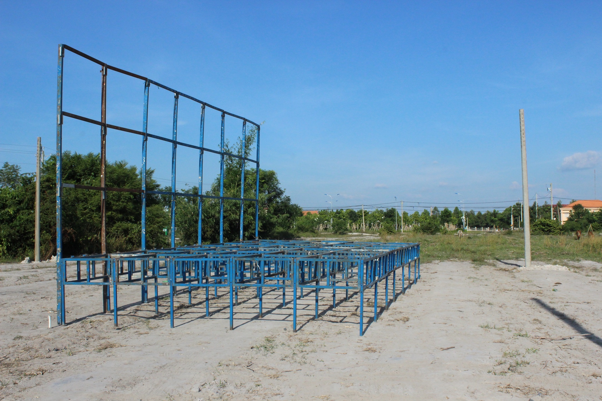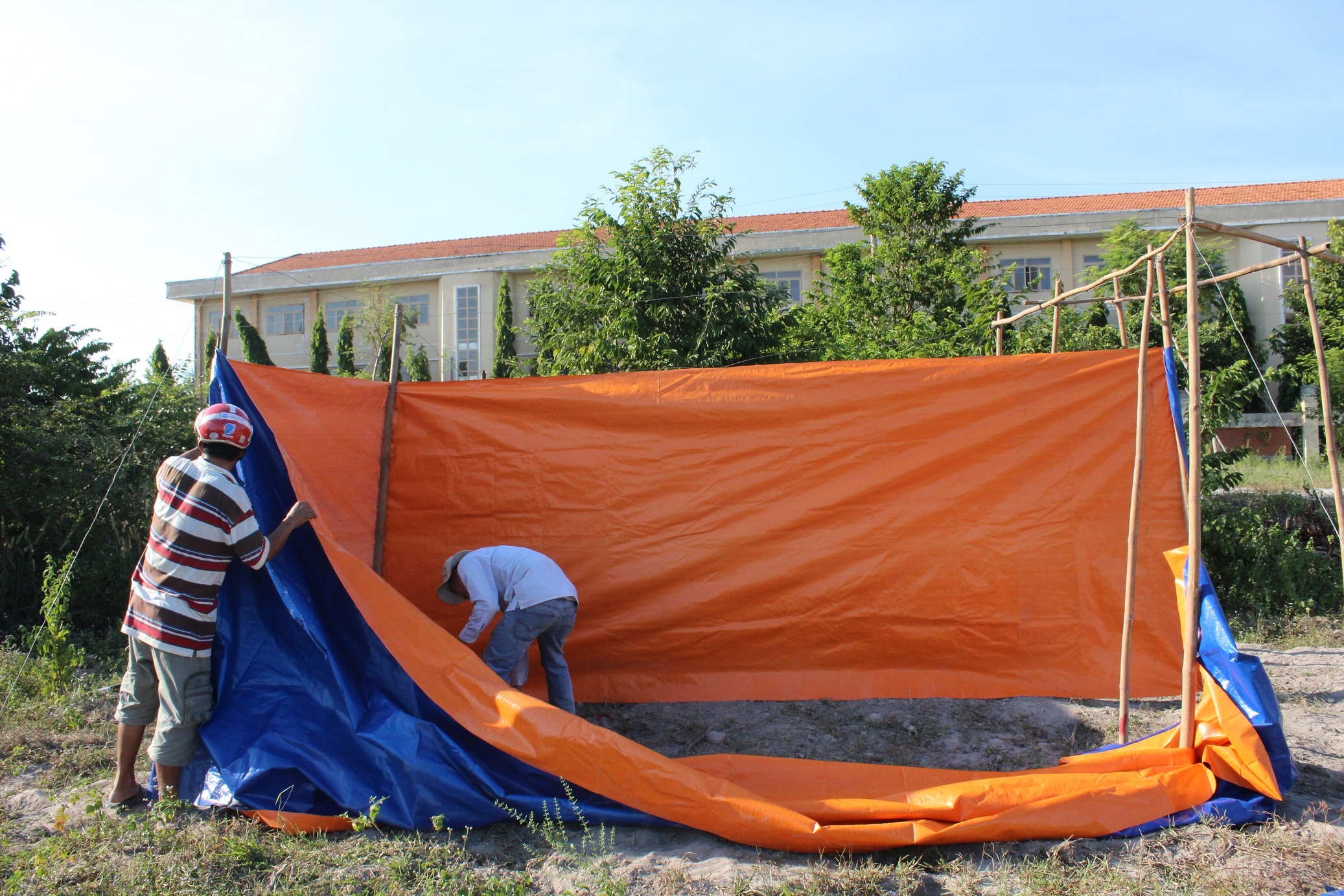 | Cơ quan chức năng dựng rạp tại bãi đất trống để mở phiên tòa. Ảnh: B.L |