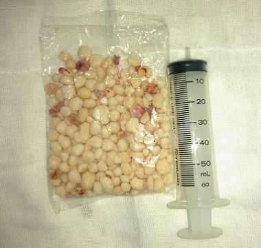 Chúng tôi đã lấy ra gần 300 viên sỏi, đường kính trung bình mỗi viên sỏi khoảng 10mm, sỏi trắng hồng như những hạt trân châu.