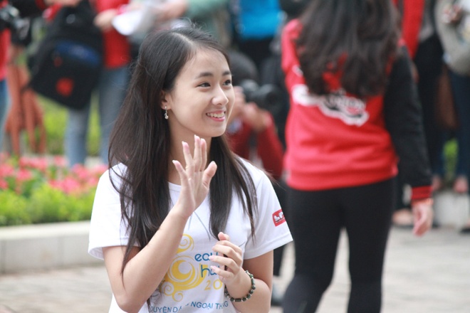 Nụ cười rạng rỡ của nữ sinh tham dự buổi đồng diễn ấn tượng. Đó là một trong những gương mặt sẽ lọt vào đêm chung kết cuộc thi Duyên dáng Ngoại thương.