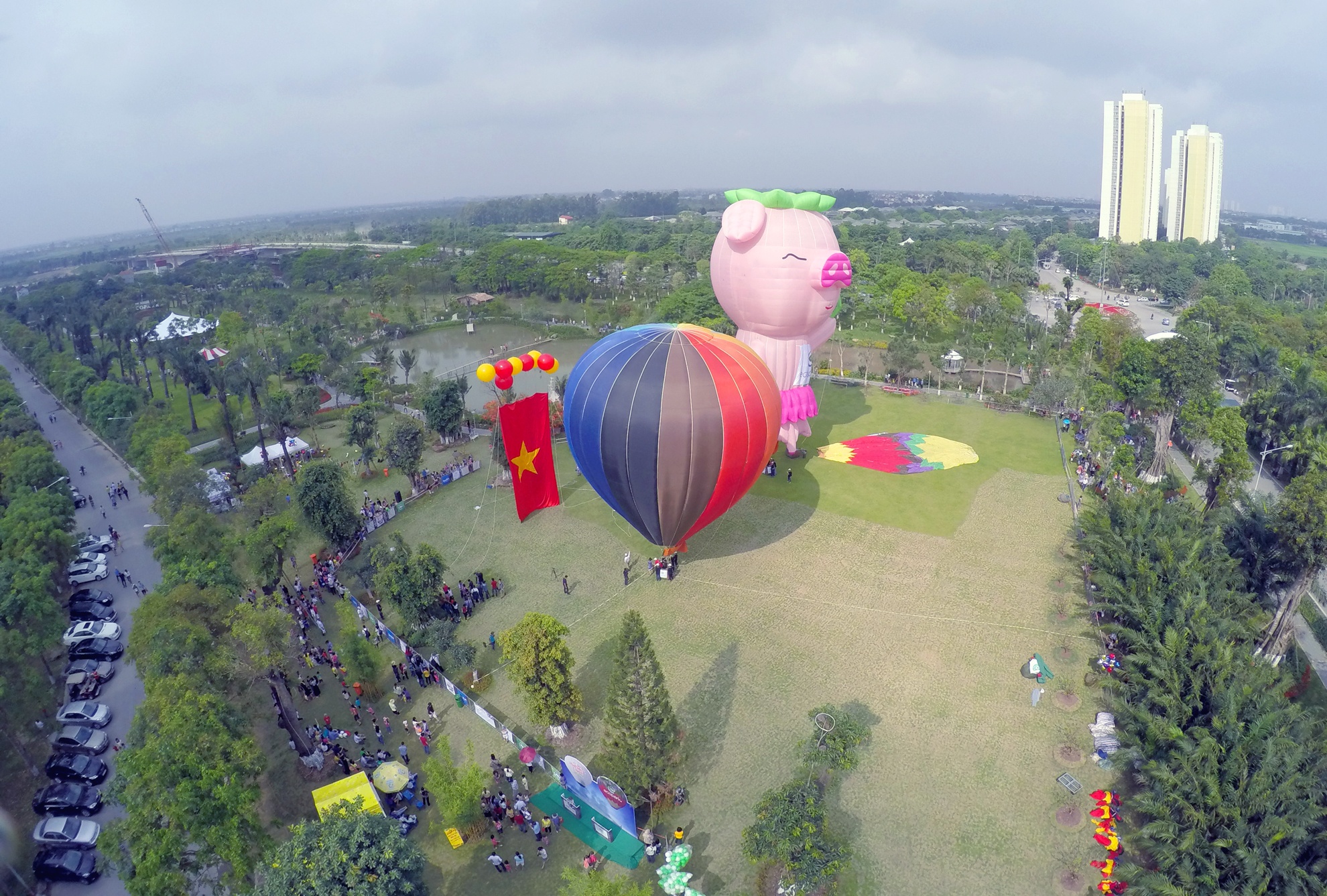 Ban tổ chức cho biết, 5 quả khinh khí cầu đảm bảo theo tiêu chuẩn quốc tế được đặt tại công viên Mùa Xuân, chiều cao 22-25 m kể cả giỏ mây.