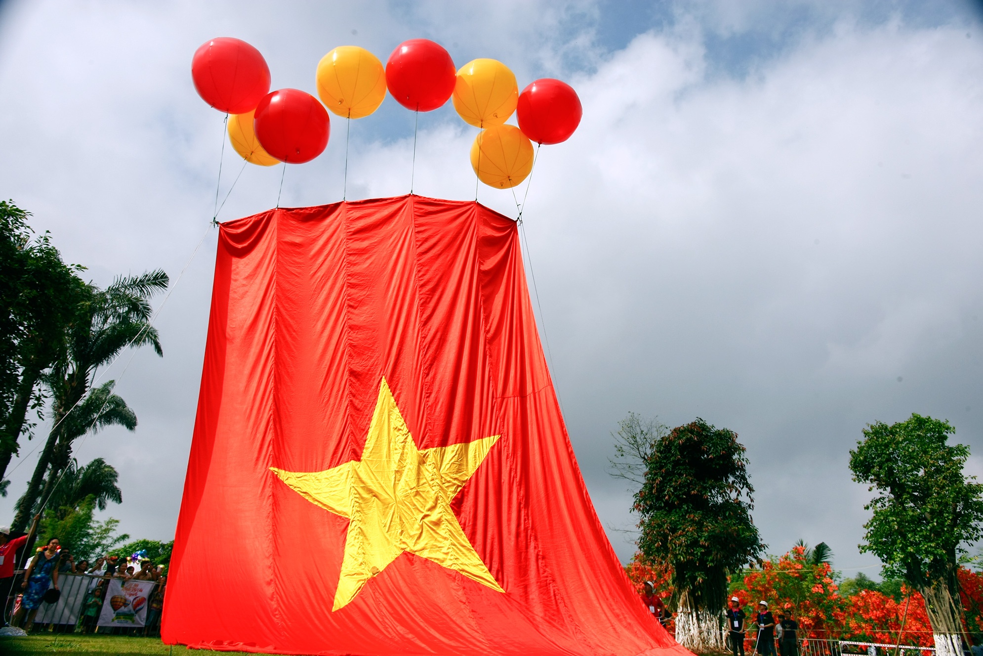 Buổi lễ khai mạc lúc 8h với việc thả lá quốc kỳ kích thước lớn bằng 8 quả bóng bay hydro.