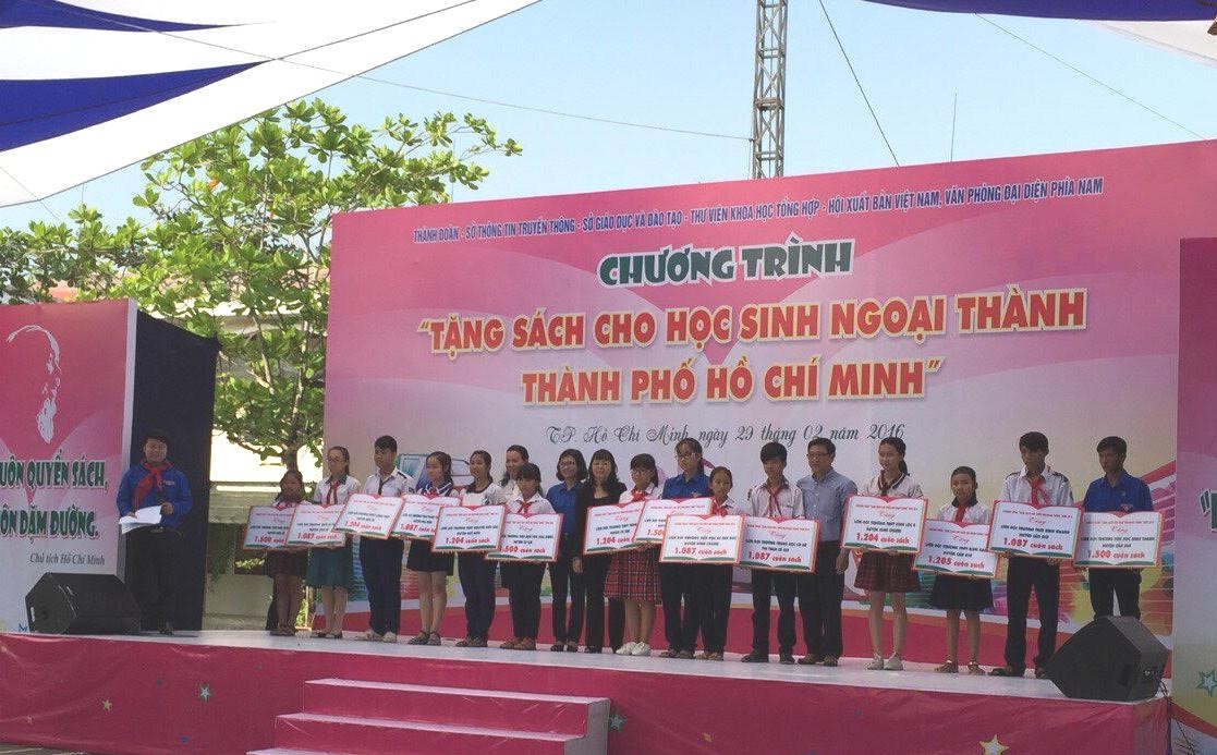 Nhằm tặng những cuốn sách hay, đáp ứng nhu cầu đọc sách cho học sinh tại các vùng còn khó khăn tại TP HCM, Thành Đoàn TP HCM phối hợp với Sở Thông tin & Truyền thông TP HCM, Sở Giáo dục & Đào tạo, Hội Xuất bản Việt Nam và Văn phòng Đại diện phía Nam, Thư viện Khoa học tổng hợp triển khai chương trình Tặng sách cho học sinh ngoại thành TP HCM.
