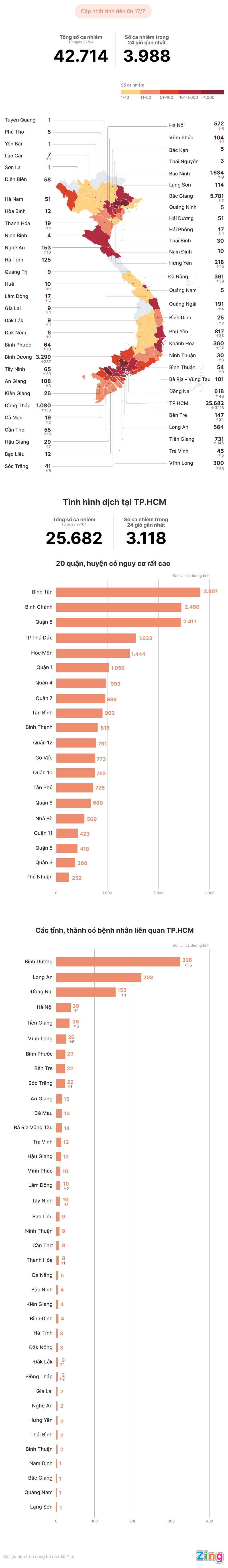 Từ ngày 27/4 đến nay, Việt Nam ghi nhận 42.714 người mắc Covid-19. Đặc biệt, nhiều tỉnh, thành phố phát hiện bệnh nhân đi về từ TP.HCM.