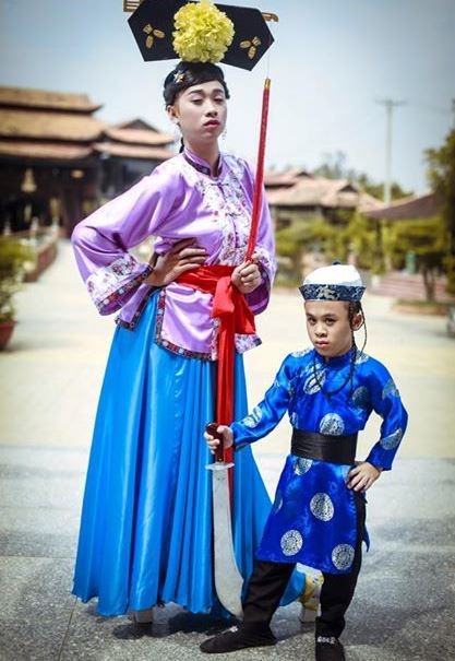 | Trần Xuân Tiến là một gương mặt không còn xa lạ đối với bạn trẻ Sài thành. Không chỉ là nhân vật hóm hỉnh xuất hiện trong các clip hài gây sốt của DamTV, Tiến còn gây ấn tượng với những người xung quanh nhờ ngoại hình đặc biệt, chiều cao chàng trai 20 tuổi chỉ vỏn vẹn 1m26. Hình ảnh Xuân Tiến hóa thân thành thái giám trong clip hài Chầu hoan cua chống của DamTV. |