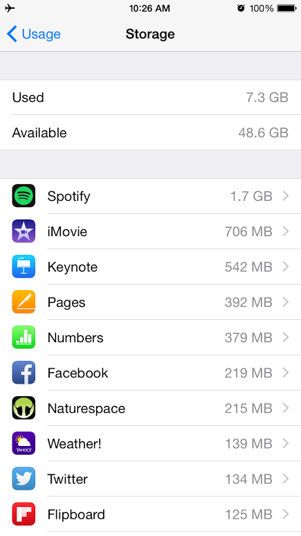 Chọn Settings > General > Usage > Manage Storage trong phần Storage. Máy sẽ đưa ra danh sách những ứng dụng tốn dung lượng nhất. Người dùng có thể cân nhắc kỹ xem bạn có thực sự cần những ứng dụng đó không. Nếu thường xuyên sử dụng nó mỗi ngày, hoặc mỗi tuần, đó có thể là ứng dụng đáng được giữ lại. Nếu ít sử dụng hoặc bạn chưa từng động đến, hãy mạnh tay xóa bỏ chúng.