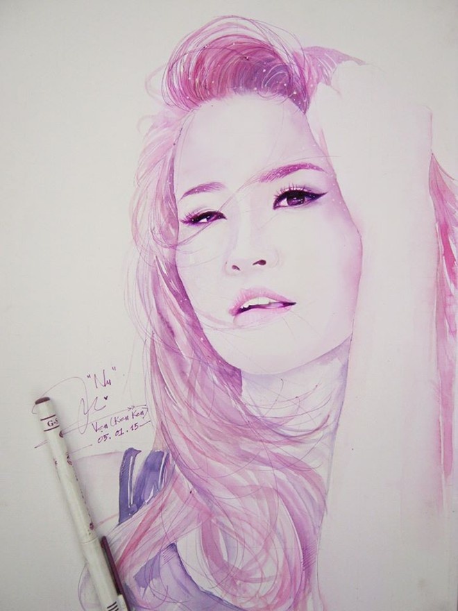 | Bức tranh vẽ Đông Nhi sống động như thật của Quốc Vẹn. |