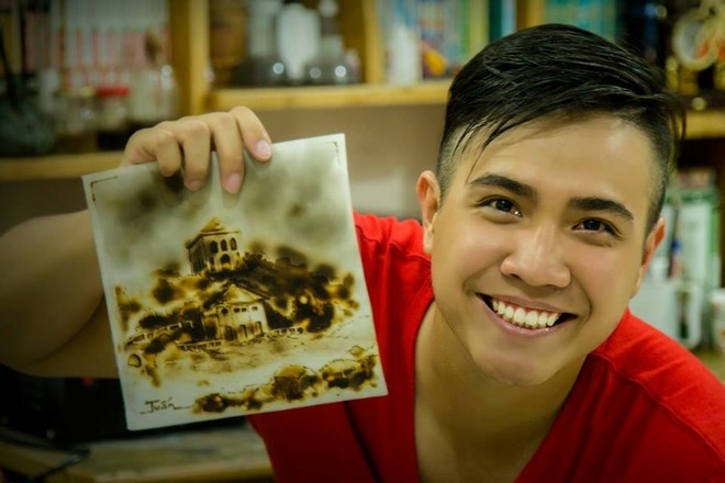 Khác với 3 chàng trai ở trên, Huỳnh Quốc Tuấn (21 tuổi, sinh viên Đại học Công nghệ TP HCM) hiện là một trong số ít bạn trẻ Việt theo đuổi nghệ thuật vẽ tranh bằng lửa.