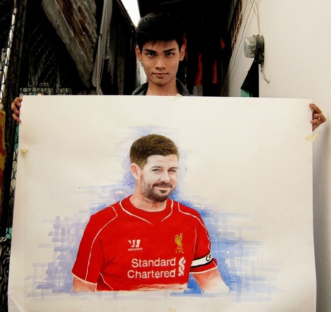 | Tranh vẽ khổ A0 cầu thủ Steven Gerrard được 9X vẽ trong hơn 1 tuần. Tác phẩm được diễn đàn Liverpool FC đăng tải thu hút gần 15.000 lượt like (thích). |