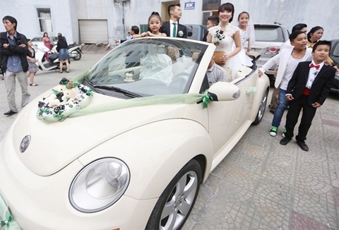 Cặp đôi chàng 1m88, nàng 1m52 tại Hà Nội cũng khiến nhiều người ngưỡng mộ. Không chỉ chênh lệch về chiều cao mà chú rể Tuấn Anh kém cô dâu Phương Chi tận 3 tuổi. (Ảnh: Kênh 14)