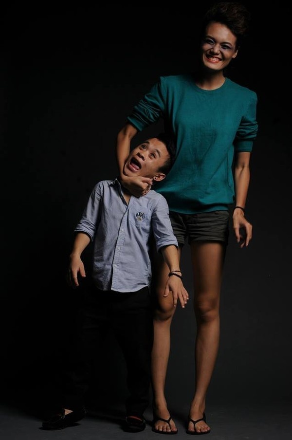 | Trần Xuân Tiến - nickname Kaydy Trần - là một gương mặt không còn xa lạ đối với teen Sài Thành khi đóng các vai hài hước. Tiến có dáng người “hạt tiêu” của một cậu học sinh tiểu học với chiều cao 1m26. Anh chàng “nấm lùn” ngộ nghĩnh này lại đang có một chuyện tình yêu long lanh với một cô nàng người mẫu chân dài là Lê Thanh Thảo. Lê Thanh Thảo từng ghi dấu qua sân chơi VN’s Next Top Model 2012. (Ảnh: Kênh 14) |