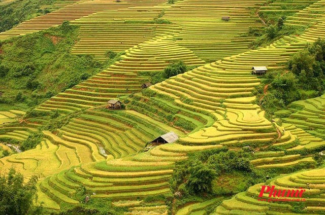 | Khung cảnh ở đèo Khau Phạ đẹp nhất vào tháng 9, tháng 10, khi những triền ruộng bậc thang của bà con dân tộc Mông phía bên Mù Cang Chải chín vàng. Bạn hãy tới các xã như La Pán Tẩn hay Chế Cu Nha nơi di sản của người Mông đã được Bộ VH-TT-DL công nhận và cấp bằng xếp hạng di tích quốc gia vào năm 2007. |