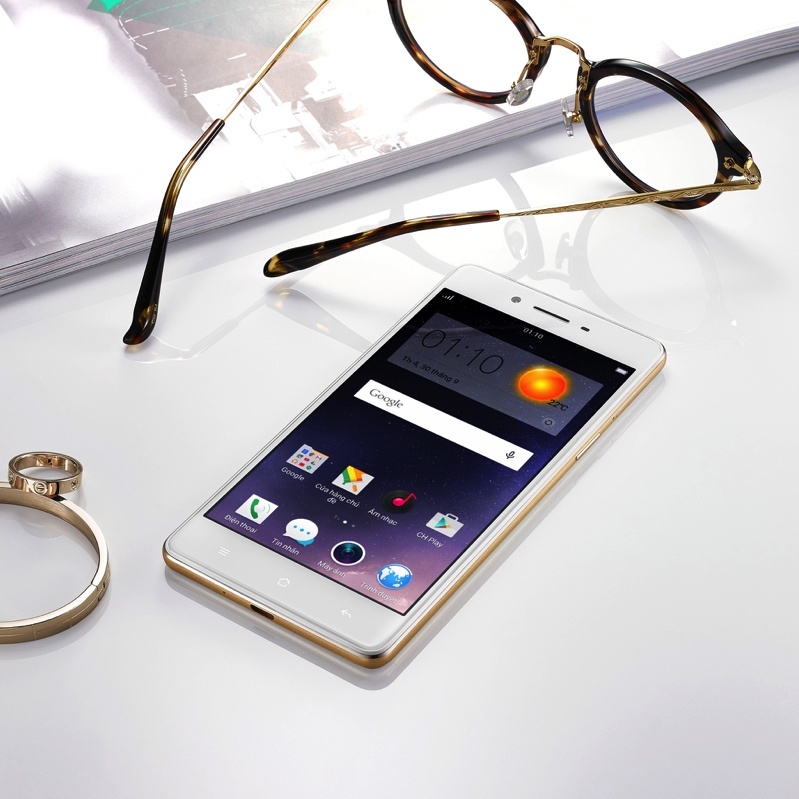 Với mức giá 5,49 triệu đồng, OPPO F1 được thiết kế sang trọng khi có thân máy nguyên khối hợp kim nhôm cùng hai màu gold và rose gold cho người dùng chọn lựa. F1 sở hữu RAM 3 GB, camera sau 13 MP, camera trước 8 MP với nhiều tính năng chụp ảnh độc đáo.