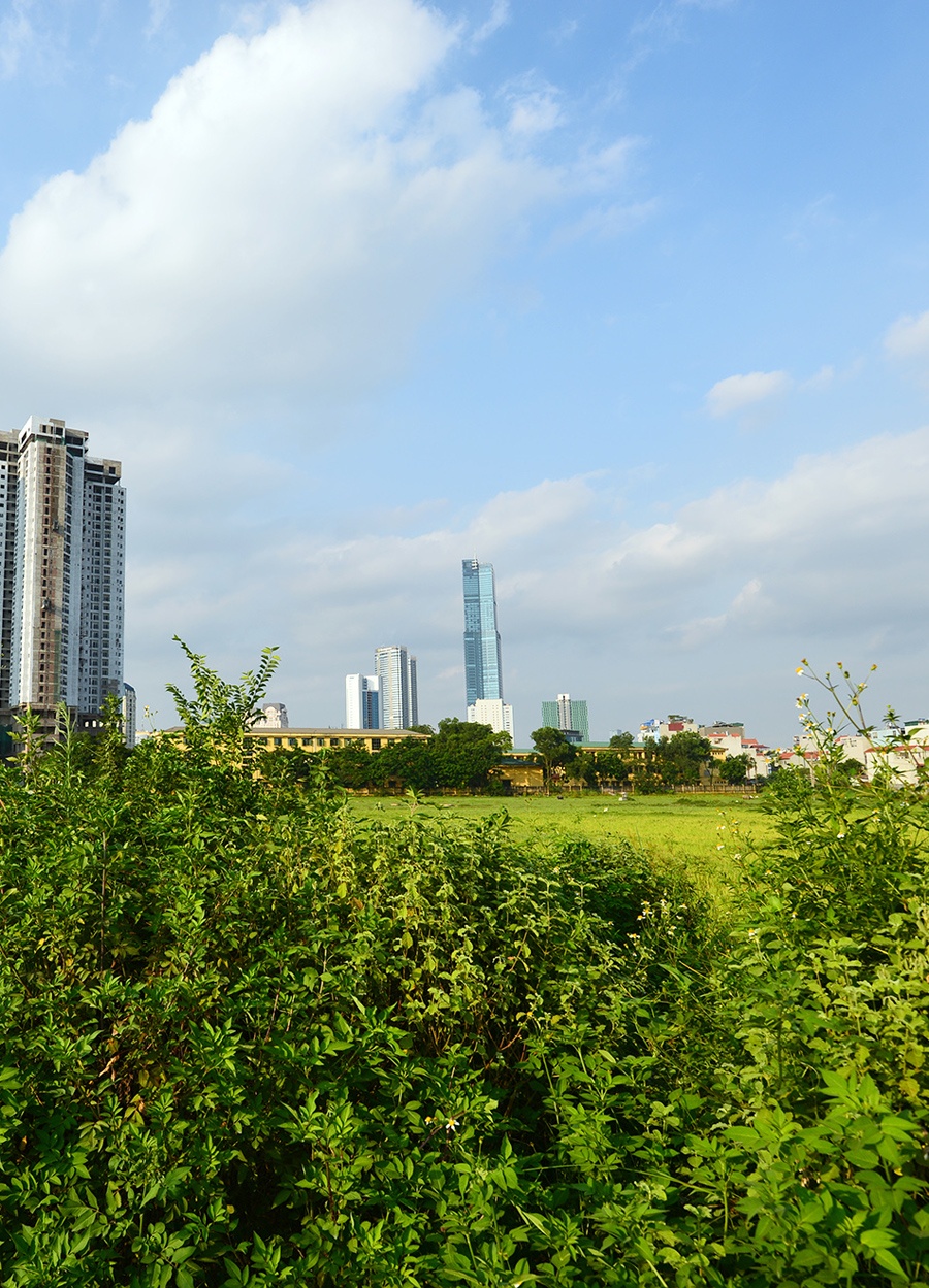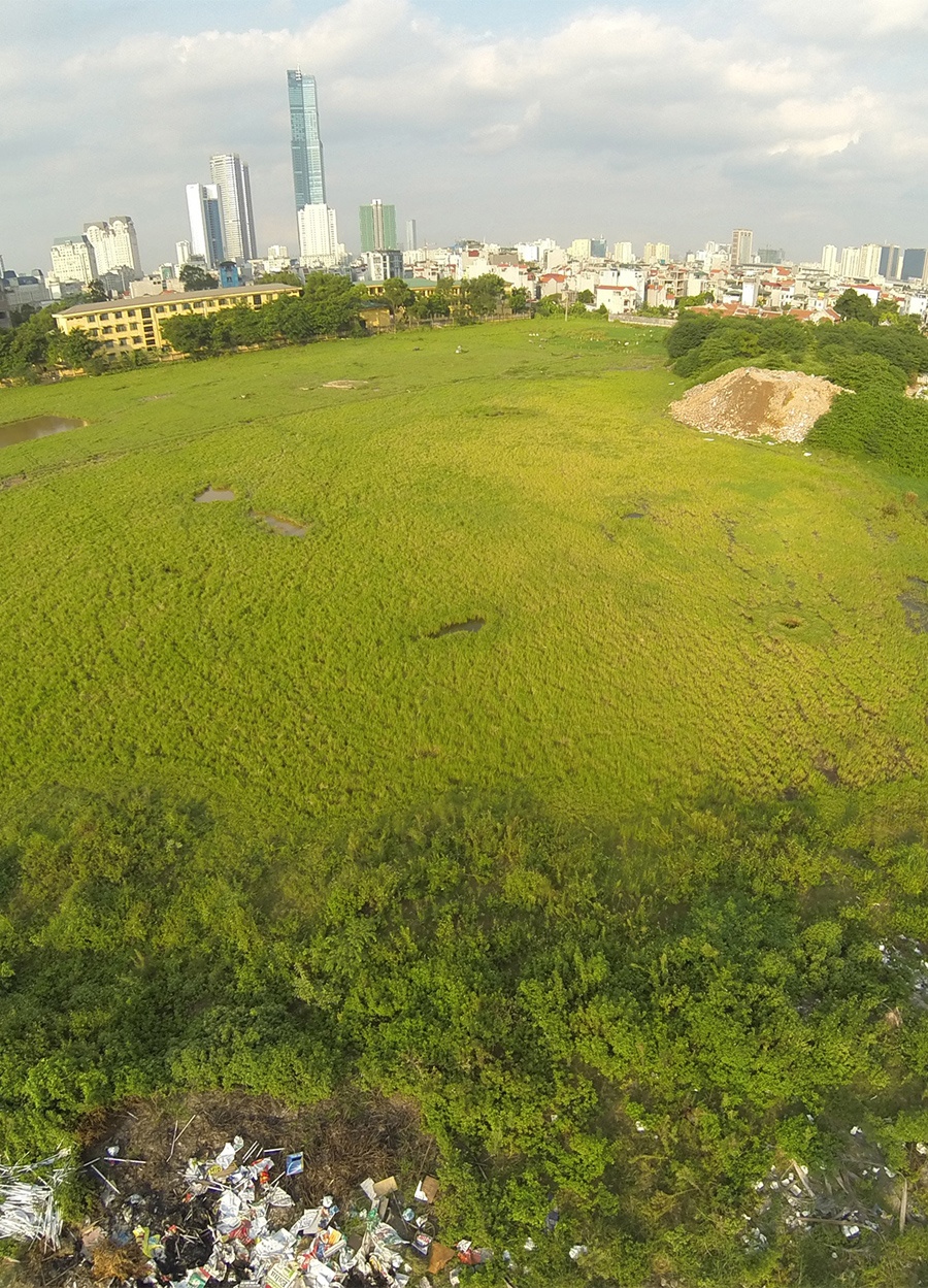 Cũng trong năm 2010, tập đoàn Kinh Bắc của đại gia Đặng Thành Tâm tuyên bố xây dựng dự án khách sạn 5 sao. Khách sạn mang tên Lotus với chiều cao lên đến 400 mét nếu được xây dựng xong sẽ là đối thủ cạnh tranh với tòa Keangnam và PVN Tower. Theo thông tin từ đơn vị đầu tư, phần diện tích xây dựng lên tới hơn 19.000 m2, tổng diện tích sàn là 640.000 m2. Trước đó, dự án này do tập đoàn của Nhật Bản làm chủ đầu tư với số vồn 500 triệu USD. Về sau, đơn vị đầu tư gặp khó khăn về tài chính, dự án được chuyển giao cho tập đoàn Kinh Bắc. Từ 15 tầng theo thiết kế ban đầu, dự án nâng lên 35 tầng và sau đó được đề xuất lên 100 tầng với số vốn khoảng 1 tỷ USD. Dự kiến, dự án này sẽ được khởi công vào quý I/2011 và hoàn thiện vào năm. Tuy nhiên, đến thời điểm hiện tại, khu đất dự kiến sẽ mọc lên tòa nhà 100 tầng đang mọc đầy… rau muống. Nhìn từ trên cao, thay vì độ hoành tráng của tòa nhà 100 tầng cao nhất Việt Nam là một màu xanh rì của rau muống, cỏ dại. Trong ảnh là thiết kế dự án khách sạn Lotus theo phương án của công ty Foster + Partners và thực tế hiện nay, phần đất dùng để làm nơi trồng... rau muống (ảnh chụp vào tháng 9/2014). |