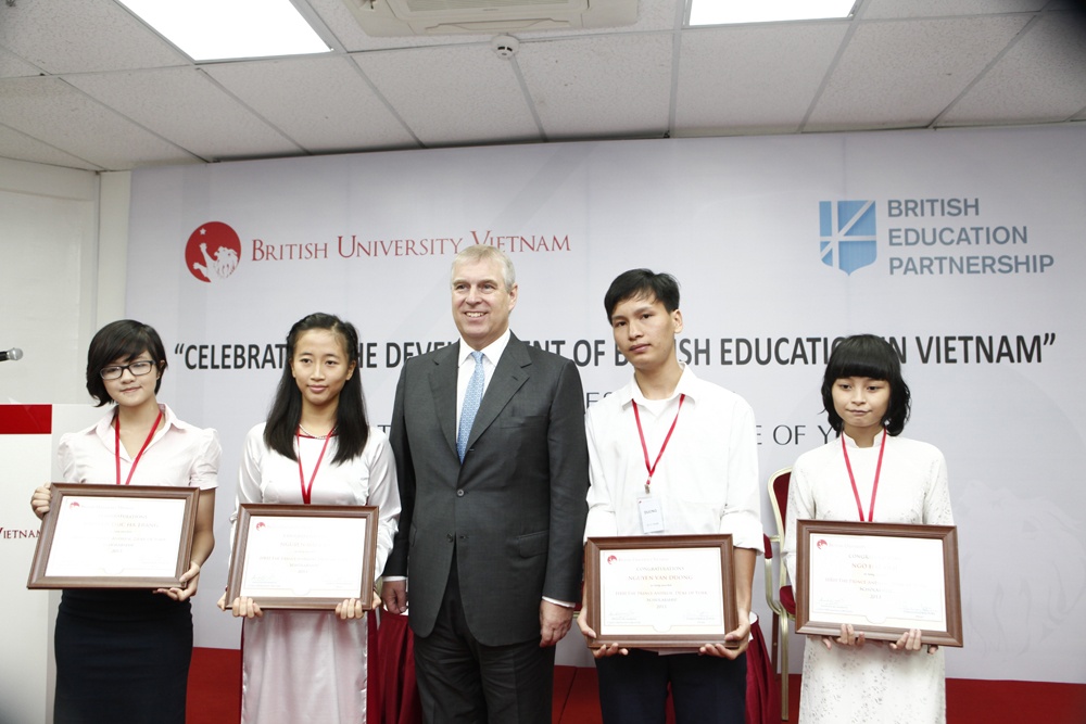 Ngày 24/9, tại Đại học British University Vietnam (BUV), bốn bạn trẻ Việt Nam tài năng đã vinh dự nhận học bổng toàn phần từ chính Hoàng tử Andrew - Công tước xứ York, Vương quốc Anh. Bốn bạn học sinh nhận học bổng là: Nguyễn Đức Hà Trang (1993), cựu học sinh trường THPT Chu Văn An, Nguyễn Mai Chi (1995), cựu học sinh trường THPT Nguyễn Tất Thành, Nguyễn Văn Dương (1993), cựu học sinh trường THPT Nguyễn Trãi tỉnh Hải Dương và Ngô Hải Anh (1995), cựu học sinh trường THPT Nguyễn Văn Huyên.