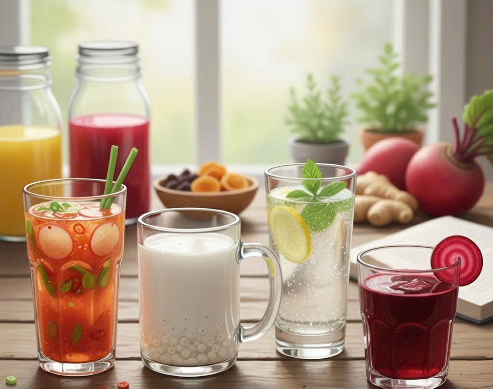 | Có nhiều loại đồ uống chứa mật độ lợi khuẩn (probiotics) cao. Ảnh minh họa: AI |