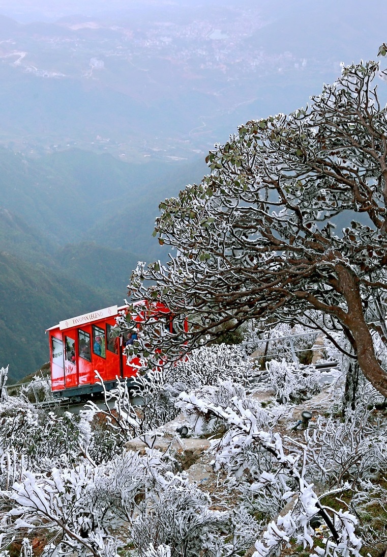 | Mùa đông, nhiệt độ trên đỉnh Fansipan có thể xuống tới -9 độ. Băng giá tạo thành những khối nhũ trong veo như pha lê trên các gờ tường, lan can, ngưng đọng trên cỏ cây, hóa băng những bông hoa trên núi.... Khung cảnh đẹp kỳ thú như bước ra từ một câu chuyện cổ tích của vùng Bắc Âu xinh đẹp. |