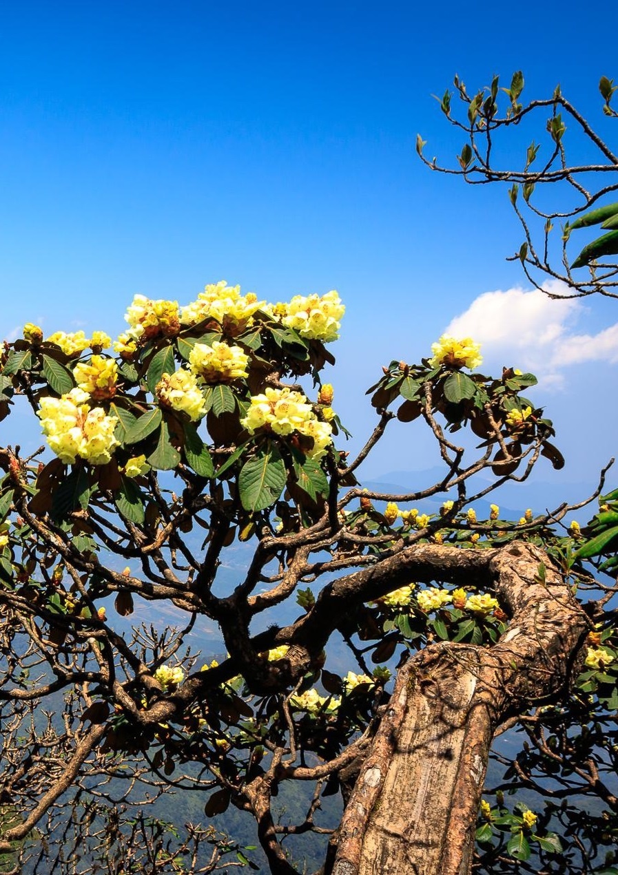 | Xuân cũng là thời điểm đỗ quyên bừng tỉnh, thêu lên đại ngàn xanh thẫm những mảng màu tinh xảo, khi rực đỏ, tím biếc, lúc lại sáng lên màu vàng non hoặc trắng thuần khiết... Không bức ảnh hay tính từ nào có thể lột tả hết vẻ đẹp Fansipan trong mùa đỗ quyên. Đó là lý do mùa xuân nào, người yêu hoa, yêu Fansipan cũng tìm về đây. |