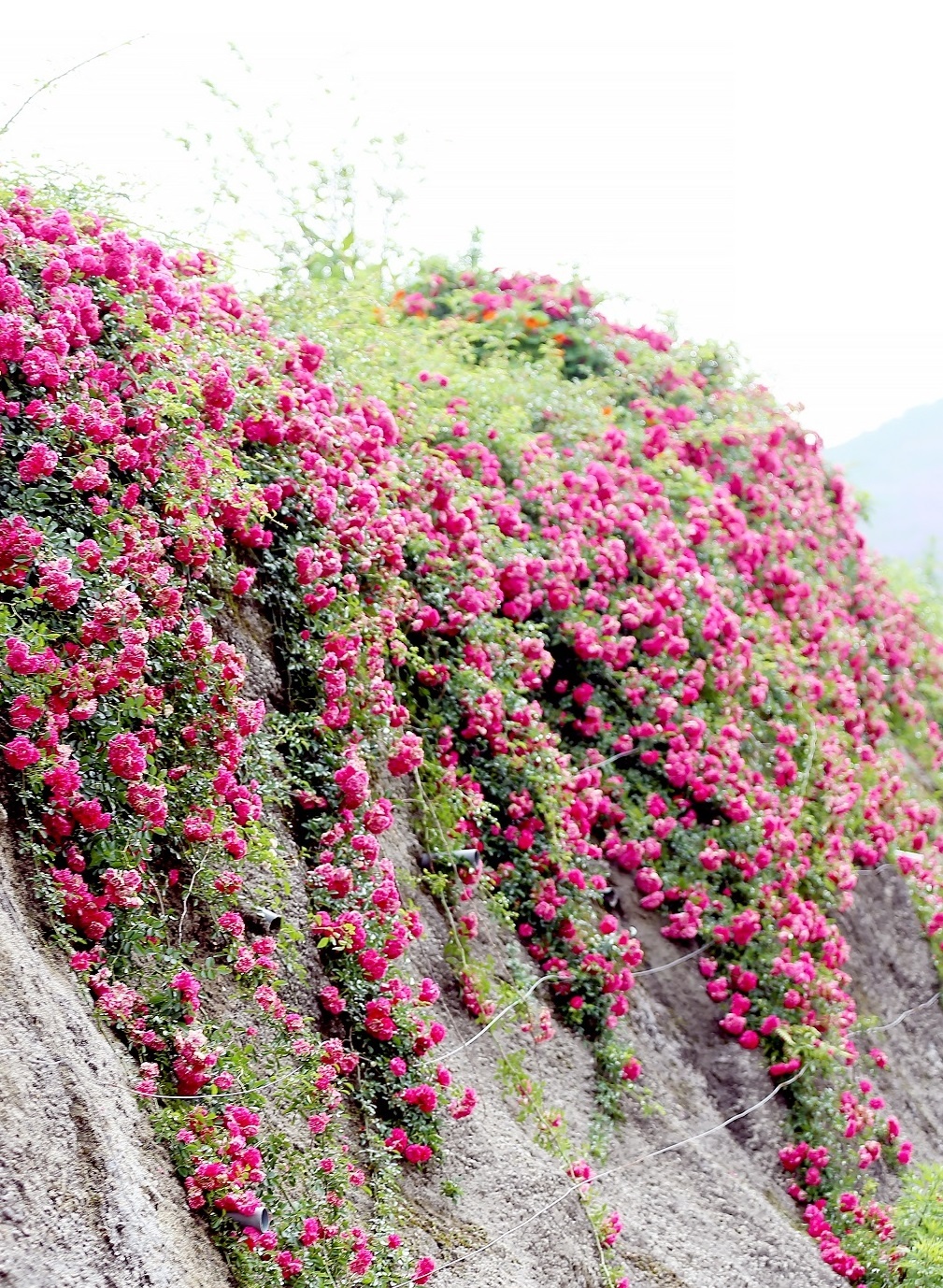 Hoa đổ tràn trên vách đá núi, bên triền đồi, hai bên đường tàu hỏa leo núi Mường Hoa, trong thung lũng hoa hồng và bên những mái chùa trong quần thể khu du lịch Sun World Fansipan Legend.