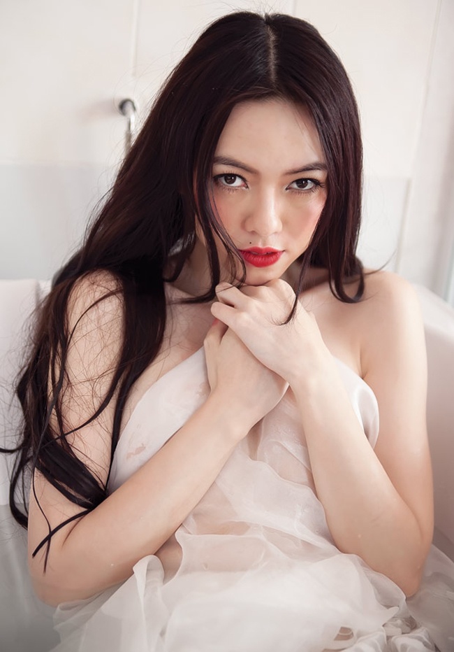 Trà Ngọc Hằng rất tự hào với vẻ đẹp của mình. Cô nói: “Tôi là người gốc Miên nên mắt tôi to hơn người thường. Nhà tôi ai cũng mũi cao, môi cong tự nhiên. Tôi cũng không tắm trắng luôn, ngày xưa tôi trắng lắm”. |