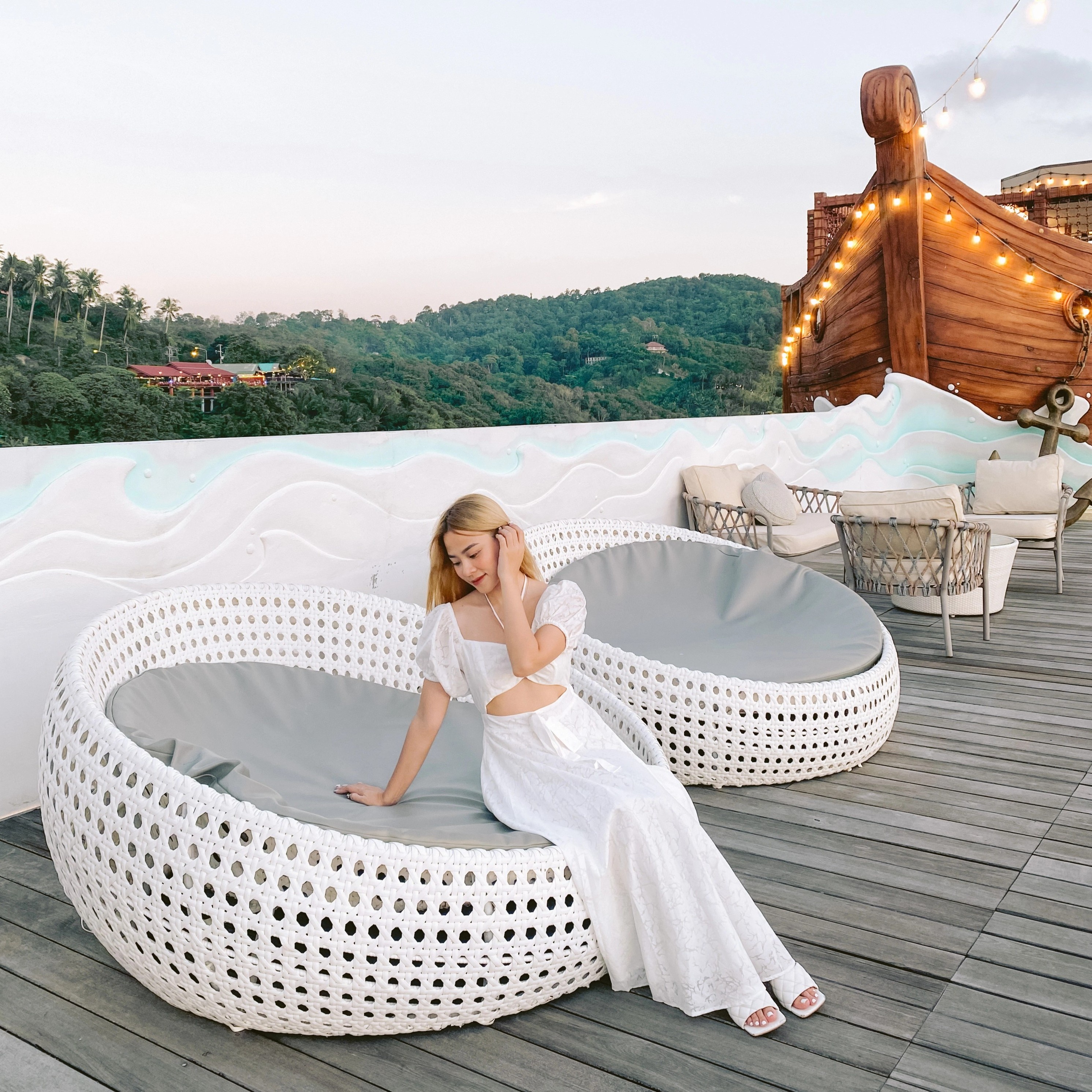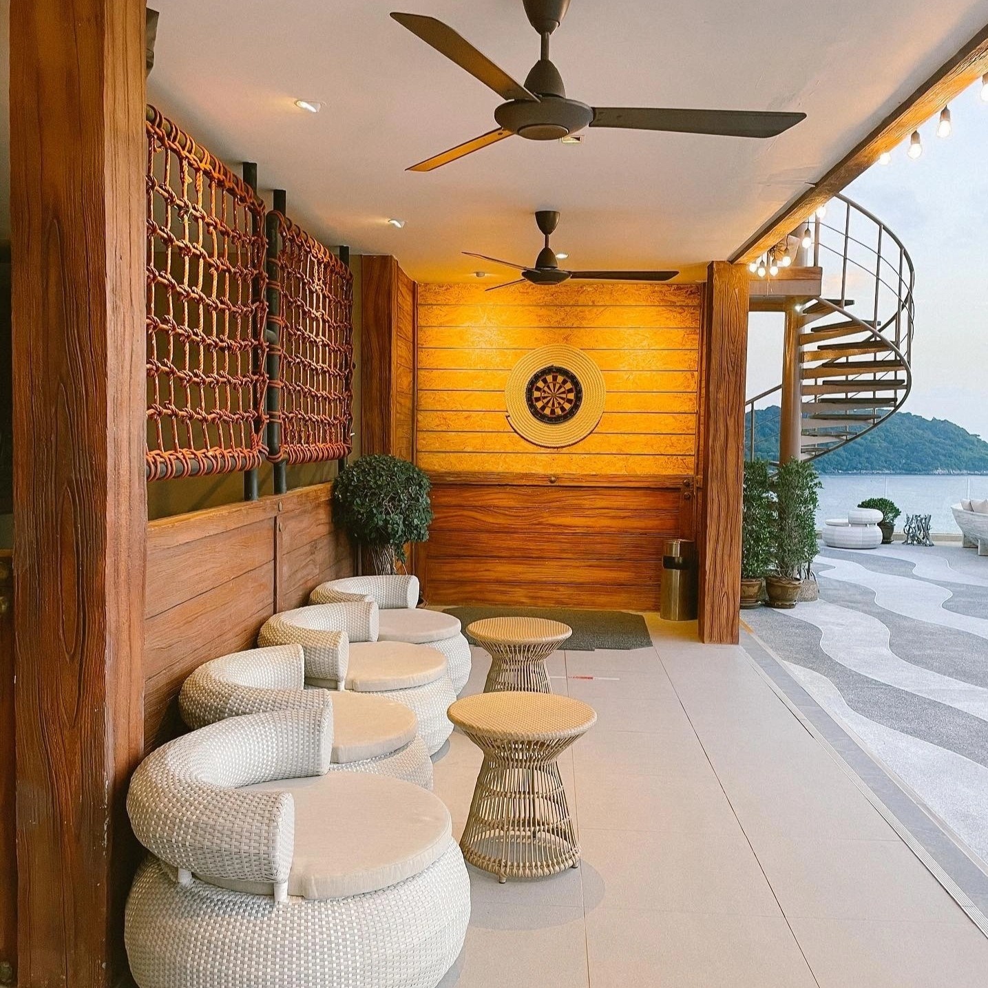 Kết thúc tour buổi sáng, nhóm về khách sạn nghỉ ngơi. Buổi chiều, tôi đến Tann Terrace Phuket ngắm hoàng hôn. Quán nằm sát bãi biển Karon khá xinh xắn, view chụp ảnh đẹp.