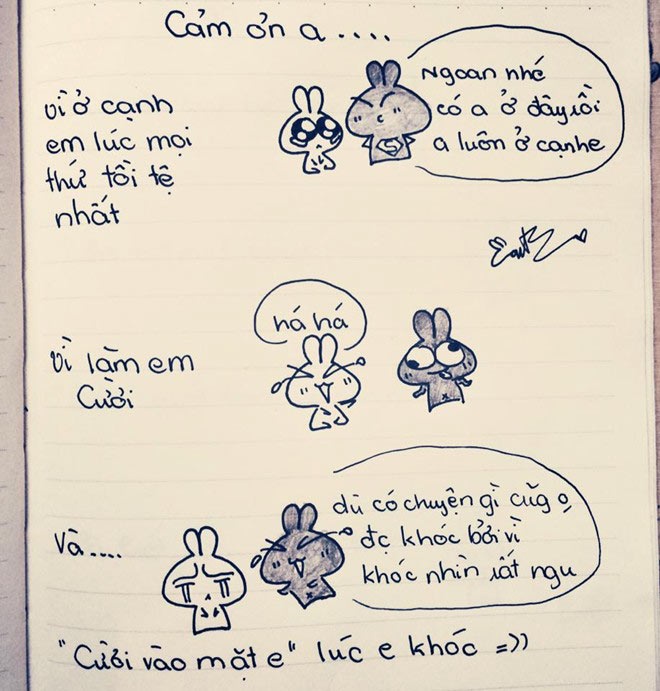 Mới đây cô chia sẻ bộ ảnh Kỷ niệm nửa năm yêu thỏ đen thể hiện những khoảnh khắc tình yêu ngọt ngào. So với thế hệ hot girl trước, hiếm cô gái nào có thể đốn tim cộng đồng mạng bằng những hình vẽ dễ thương như thế này.