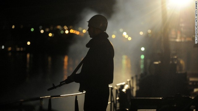 | Binh sĩ Ukraina gác trên chiến hạm ở Sevastopol. Ảnh: Getty. |