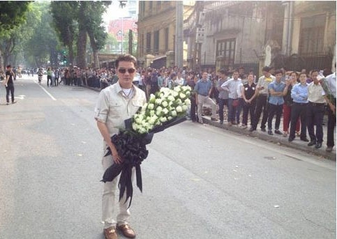 Ngay trong ngày 6/10 vừa qua ngày đầu tiên mở cửa để người dân vào viếng Đại tướng tại số nhà 30 phố Hoàng Diệu, hàng nghìn người đã đến thắp hương trước di ảnh của Người. Với tất cả lòng kính trọng một vị tướng lừng danh thế giới, hàng chục nghìn người không ai bảo ai, lặng lẽ xếp hàng tiến vào căn nhà cổ kính, nơi Đại tướng từng sống và làm việc… Không khí trang nghiêm, đau buồn ấy bỗng nhiên bị phá vỡ bởi một tốp người mặc quần áo sáng màu xuất hiện, vượt qua đoàn người, rảo bước tiến vào gian chính căn nhà Đại tướng từng sinh sống. Tốp người đó chính là Đàm Vĩnh Hưng và những người thân của anh.