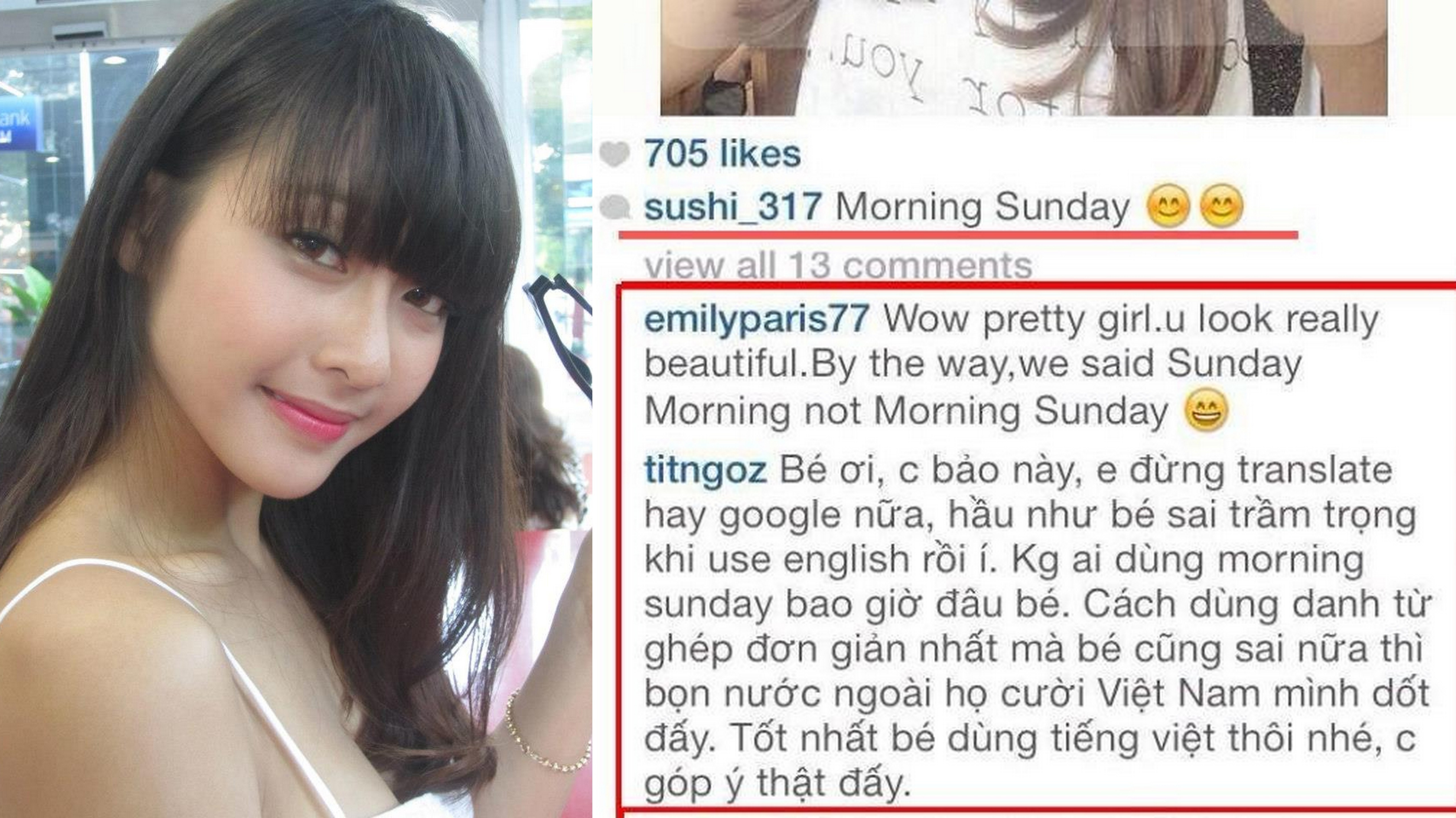 | Scandal mới đây nhất mà boxing girl đối mặt chính là tin đồn bỏ học, sự thật về trình độ học vấn khi lộ đoạn nói chuyện bằng tiếng Anh với khả năng sử dụng ngoại ngữ hạn chế. Bản thân hot girl cũng thừa nhận đang tạm hoãn việc học một năm để tham gia các dự án phim ảnh. Với cách sử dụng tiếng Anh như hiện tại, nhiều người đang nghi ngờ về danh hiệu học sinh giỏi nhiều năm liền mà hot girl từng khoe với báo chí. |