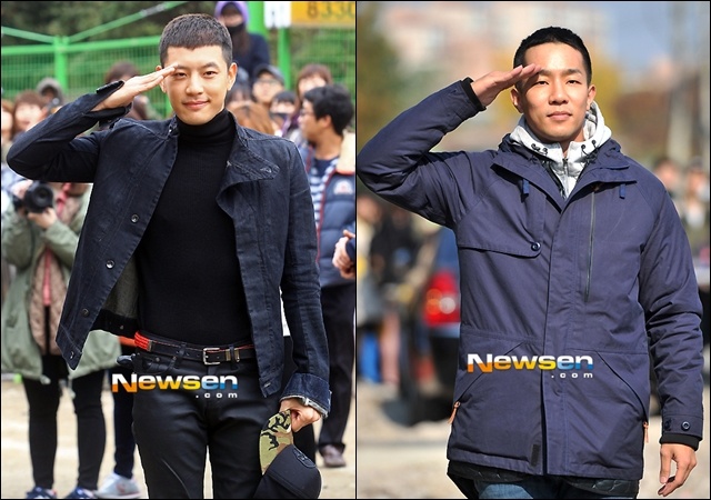 Se7en và Sangchu trong ngày nhập ngũ. |
