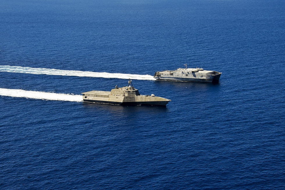 Với khả năng di chuyển nhanh, tàu chiến đấu ven biển LCS-2 (phía dưới) có tính cơ động cao. Tàu chỉ cần một đội thủy thủ đoàn nhỏ. Hải quân Mỹ bắt đầu sử dụng LCS-2 từ năm 2009. Nó có thể thực hiện nhiều nhiệm vụ như phá mìn, săn tàu ngầm trong vùng nước nông, diệt thuyền cỡ nhỏ. Tuy nhiên, LCS-2 không có khả năng chống tàu chiến.