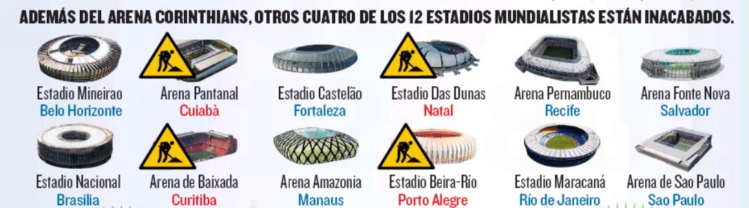 Sân Arena das Dunas tại Natal, nơi sẽ tổ chức trận Mexico gặp Cameroon vào ngày 13/6 còn nhiều hạng mục chưa hoàn thành. Sân Arena das Dunas vẫn chưa thể vượt qua các cuộc kiểm tra chất lượng công trình và nhận được chữ ký an toàn của cơ quan cứu hỏa.