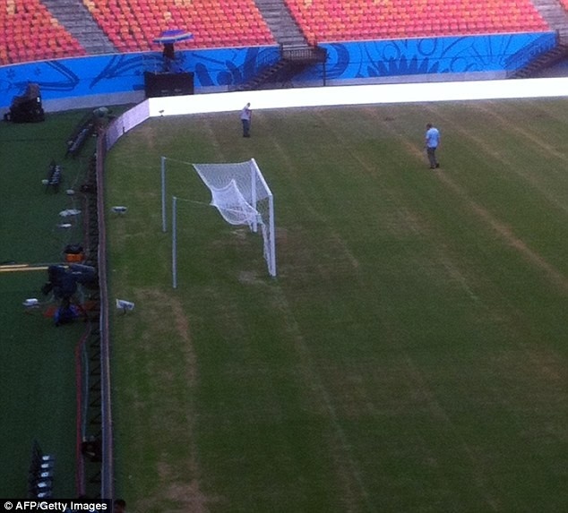 | Thảm cỏ xấu xí trên sân Arena Amazonia. |