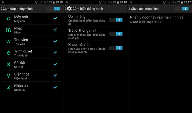 Bên cạnh đó, điện thoại này còn hỗ trợ nhiều thao tác mở nhanh một số ứng dụng hay dùng từ màn hình khoá, chẳng hạn như vẽ chữ C để mở máy ảnh, chữ M để mở nhạc, E để mở trình duyệt, V để gọi điện, S để nhắn tin hay S để truy cập nhanh vào phần cài đặt.