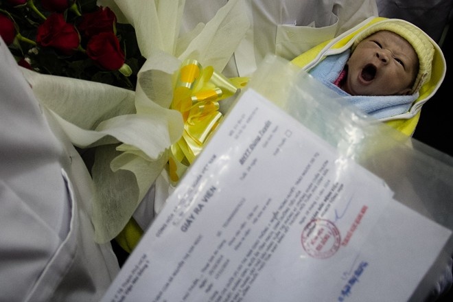 | Ngày 18/12, cháu Nguyễn Quốc Huy, thai nhi văng khỏi bụng mẹ đã được xuất viện sau hơn 20 ngày điều trị tại bệnh viện Nhi Đồng 1. Ảnh: Hải An. |