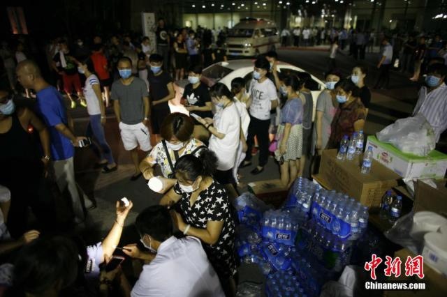 Người dân thành phố 15 triệu dân choàng tỉnh trước tiếng nổ kinh hoàng. “Tại thời điểm vụ nổ xảy ra, mặt đất rung chuyển dữ dội, xe hơi và các tòa nhà lân cận đều rung lắc, cửa kính của một vài tòa nhà bị phá vỡ và mọi người bắt đầu bỏ chạy”, nhân chứng tên Yang nói với phóng viên BBC. Ảnh: AFP