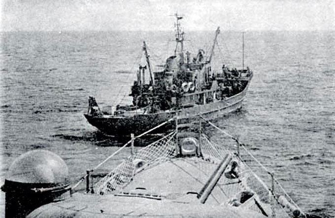 | Tàu cá vũ trang Trung Quốc cản đường chiến hạm VN tiến vào Hoàng Sa. |