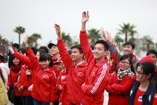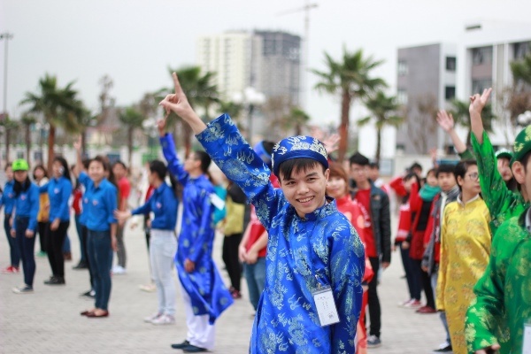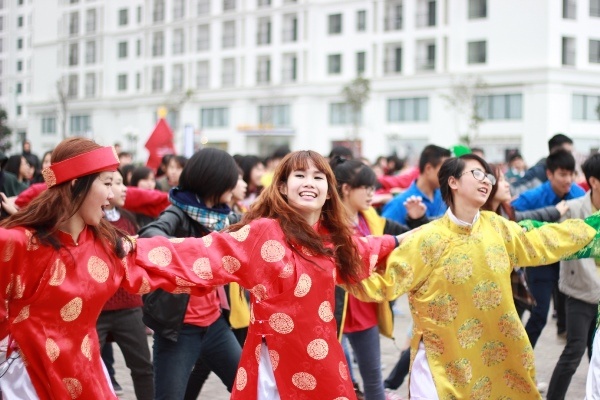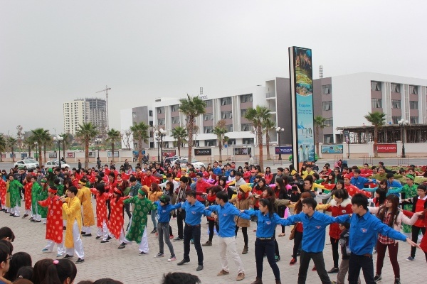 | 400 bạn trẻ tham dự biểu diễn màn flashmob trên nền nhạc bài hát Ngày tết quê em. |