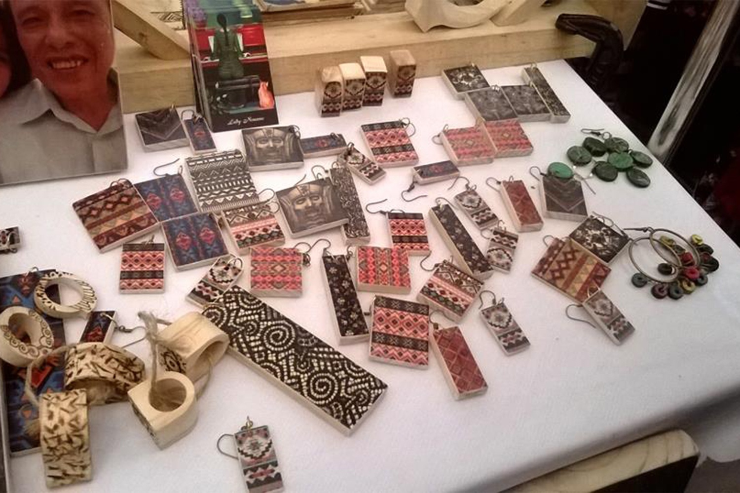Gỗ vụn trước đây được các xưởng mộc bỏ đi nhưng nay, qua bàn tay khéo léo của các nghệ nhân đã trở thành đồ trang sức độc lạ, góp thêm chất liệu mới cho ngành thời trang. Ảnh: NVCC