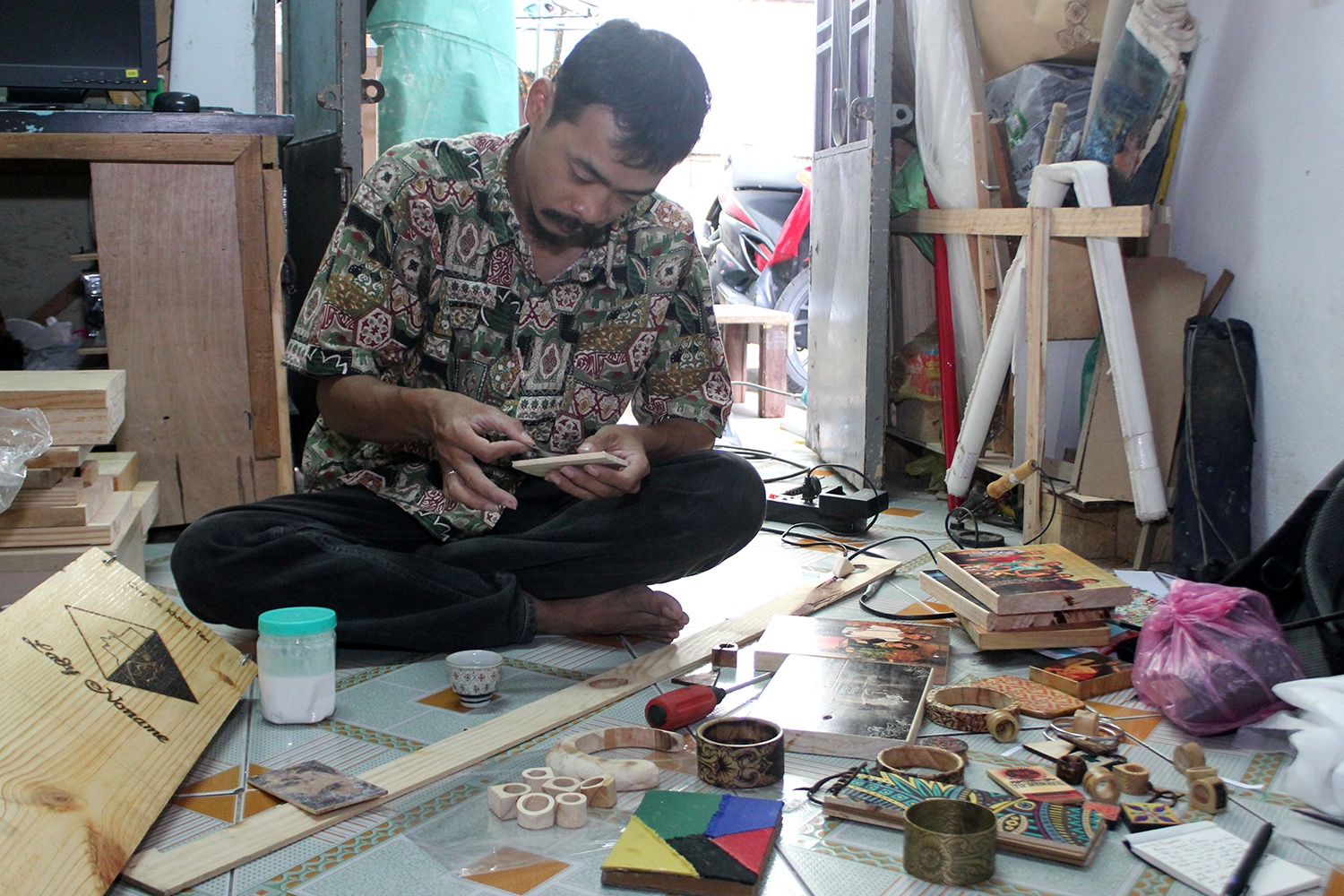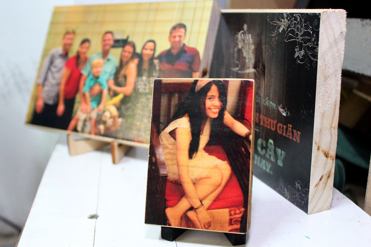 | In hình lên gỗ là sản phẩm nhận được nhiều sự quan tâm của khách hàng. Theo anh Khoa, nếu nhìn qua sản phẩm, nhiều khách hàng sẽ nghĩ việc in hình này rất phức tạp, nhưng trên thực tế lại khá đơn giản. |