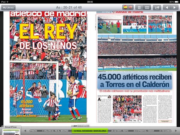 | Tờ Marca đã dành tới 8 trang để mô tả sự tái hợp giữa Torres và Atletico. |