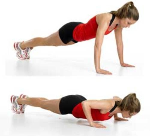Động tác: Đầu tiên để hai tay bạn rộng hơn vai và cánh tay phải thẳng. Chú ý giữ thẳng phần chân, hạ thấp cơ thể cho đến khi ngực gần chạm sàn. Giữ nguyên vị trí này từ 3-5 giây, sau đó nâng cơ thể lên rồi lặp lại từ 12-15 lần. Tập động tác này khoảng 3 lần.