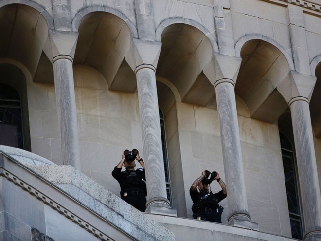 Các đội chiến thuật cùng lính bắn tỉa được bố trí khắp nơi xung quanh khu vực Giáo hoàng xuất hiện. Mỹ cũng tăng cường máy quay giám sát trên khắp thành phố trong chuyến thăm lịch sử của Giáo hoàng.